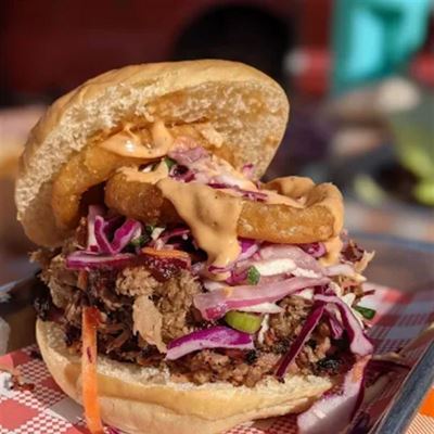 Don’t go past 12-hour smoked beef rib with sides of mac and cheese, slow-cooked spicy beans and red cabbage, fennel and apple slaw in an apple cider dressing; or wrap your mouth around a Smokin’ Al’s burger with beef patty, American cheese, beef rasher, caramelised onion, lettuce, chipotle mayo and BBQ sauce, on a milk bun.