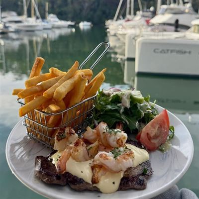Those looking for a sensational steak sandwich can order tenderised marinated rump, caramelised onion, capsicum, rocket, aioli and tomato relish on Turkish with chips to take away; or battered fish and chips with salad and tartar sauce.