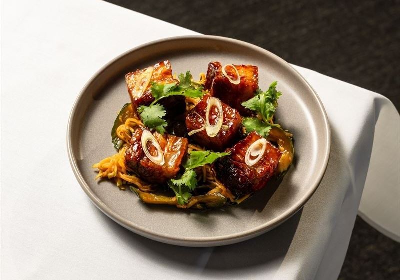 Weekend brunch also awaits with offerings like soft poached eggs atop garlic yoghurt, drizzled with spiced butter sauce, or Turkish sausage with fried eggs and fresh bazlama bread; those with large appetites opt for the big breakfast with olives, feta, cucumber, tomato, halloumi, fig jam, natural honey, fruit, eggs, sucuk, gozleme and fresh coffee.