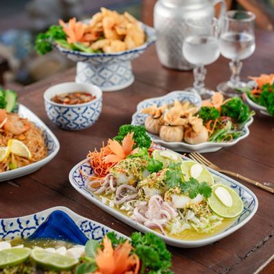 Don’t miss the tom kha gai soup - a fragrant concoction of chicken, coconut milk, chilli, and lime juice that warms the soul. For curry enthusiasts, the slow-cooked massaman beef promises a delightful blend of cashew nuts, potatoes, and onions, or try the Chef's enticing seafood curry that offers a splash of exotic flavours. Make your reservation today for a feast that reflects the true essence of Thailand.