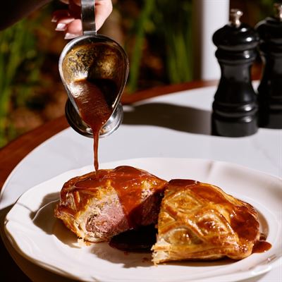 For the ultimate showstopper, the Côte de Boeuf is unmissable— - ry-aged rib on the bone, perfectly cooked and served with a decadent red wine jus. Paired with classic French sides, it’s the kind of dish that lingers in your memory long after the last bite.