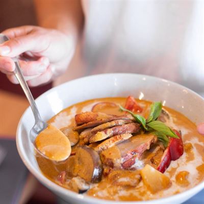 Begin your culinary adventure with the Thai fish cakes served with sweet and sour sauce, or dive into crispy Peking duck spring rolls paired with hoisin sauce. For the main event, the crispy pork stir-fried with garlic, chilli, broccoli, and capsicum offers a symphony of tastes, while the slow-cooked yellow curry with tender lamb is an experience you won’t forget. Each bite narrates the rich heritage of Thai cooking, embodying a world of flavour in each dish.
