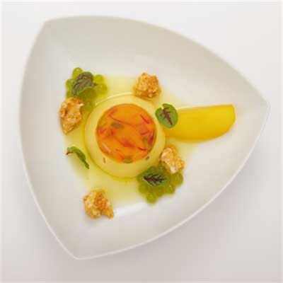 Juice the lemon, lime and orange, place in a saucepan with the rice vinegar and sugar, reduce by half and whisk in the remaining 150g butter (cubed and cold) off the heat. A slightly thick yellow sauce should be the end result. Season with salt and white pepper and add the flying fish roe.