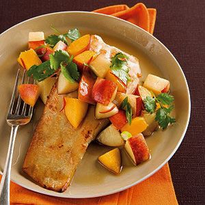 Grilled fish to cover with charcoal flavour and place on the plate then put garnishes on top of fish and done.