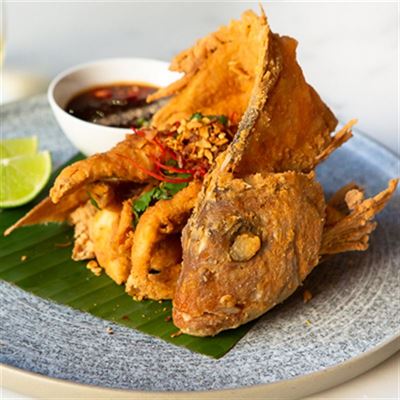 Slice the prepared Kingfish into slices around 5mm thick. Lay on a plate, sprinkle with a little sea salt and dress with coconut ponzu dressing.