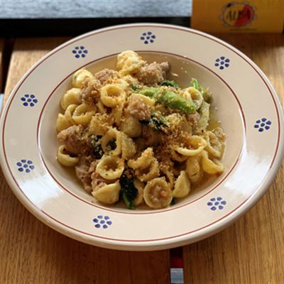 Heat a 30 cm fry pan or paella pan on high heat, add chorizo and cook until golden brown. Add sofrito and cook until tomatoes start to become juicy (3-4 minutes). Add chicken stock and bring to the boil. Stir in rice and seafood and bring to simmer. Continue simmering for about 10 minutes.