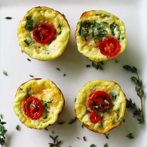 Scatter with crumbled goat’s cheese and bake for 15-20 minutes, until set. Remove from the oven and allow to cool slightly before removing from the tin.