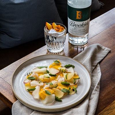 Pour the cocktail into the smoked clear rocks glass over a large ice cube.